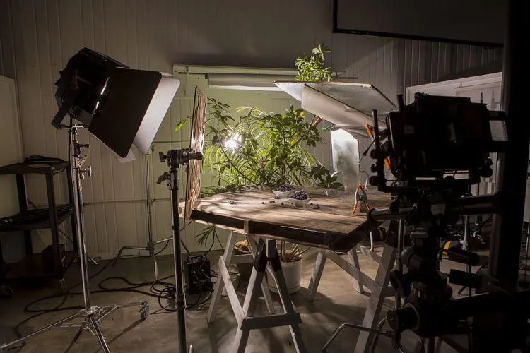 Если вы снимаете на предметном столе или используете простые бумажные фоны, то весь сетап можно компактно разместить в углу комнаты.