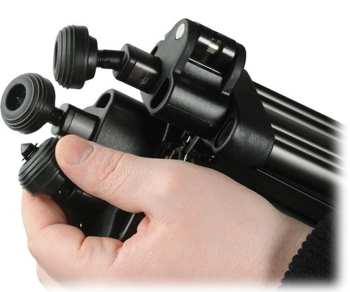Дополнительная стабилизация на профессиональных моделях штативов обеспечивается при помощи крюка, который позволяет добавлять груз на центральной оси, чтобы сделать штатив более устойчивым, удерживать при сильном ветре или работе на неровной земле.