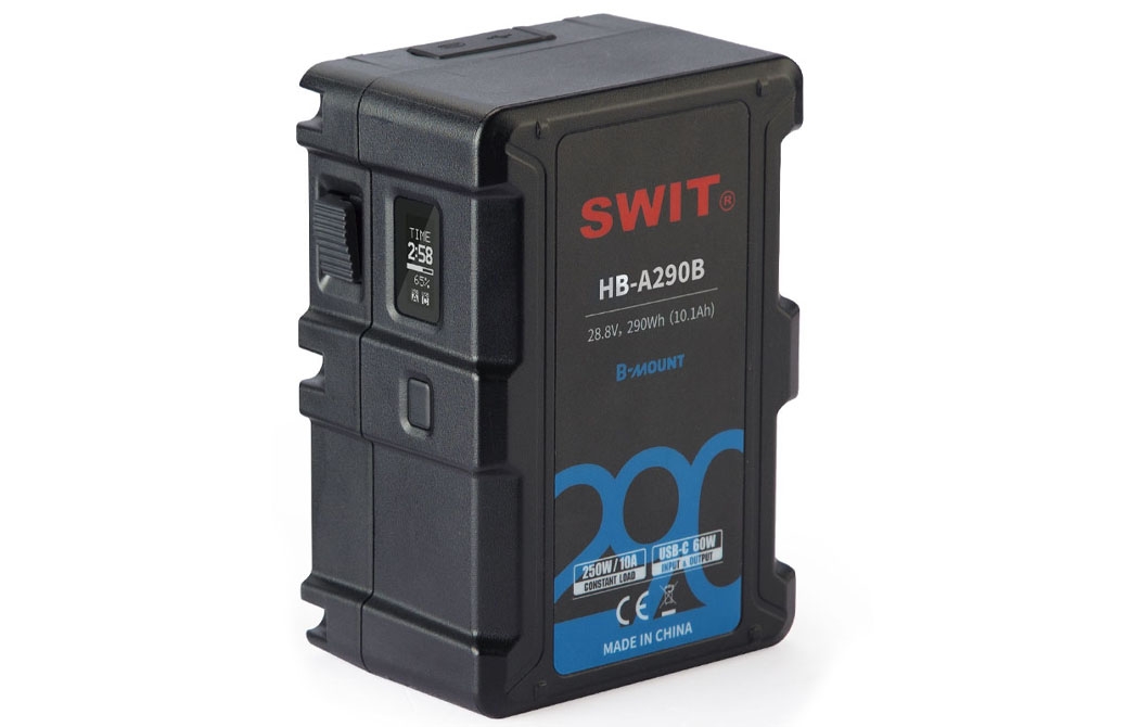 HB-A290B это аккумуляторная батарея от SWIT с креплением B-mount - отраслевого стандарта одобренного компанией ARRI. Емкость аккумулятора составляет 290 Вт.ч, он имеет несколько выходов питания, включая D-tap, USB-A и USB-C, для подключения периферийных устройств.