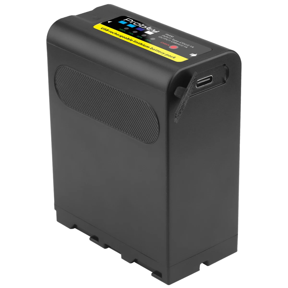 - Универсальность: PROBTY NP-F990 совместим с различными устройствами, включая камеры, видеосвет, и другие гаджеты. Отличительной особенностью данного аккумулятора является возможность подключения устройств через кабель USB-C.