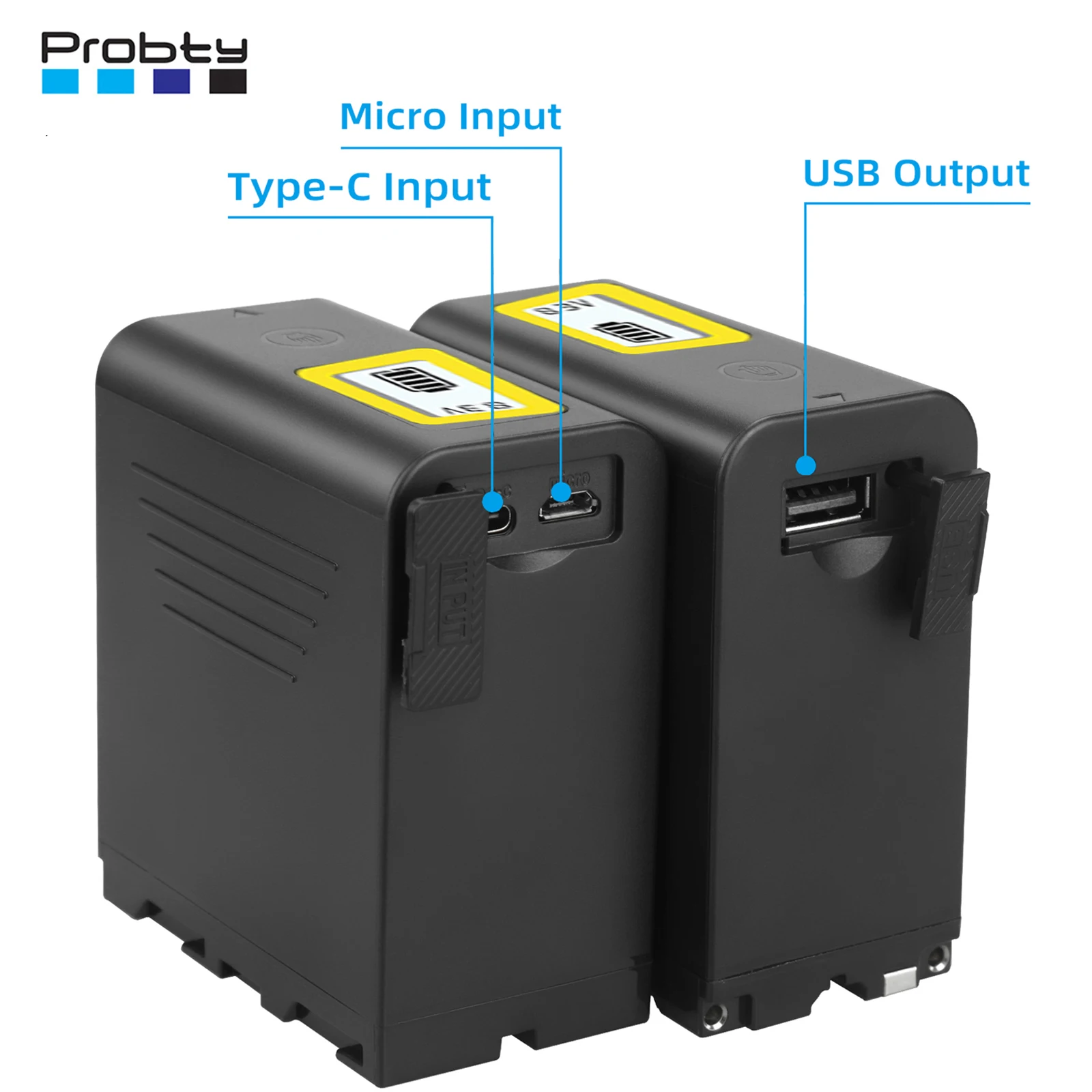 - Совместимость: Аккумулятор PROBTY 7800MAH совместим с широким спектром устройств от компании Sony, включая камеры, осветительное оборудование и другие устройства. Так же к аккумулятору можно подключиться через разъёмы USB/micro/Type-C.