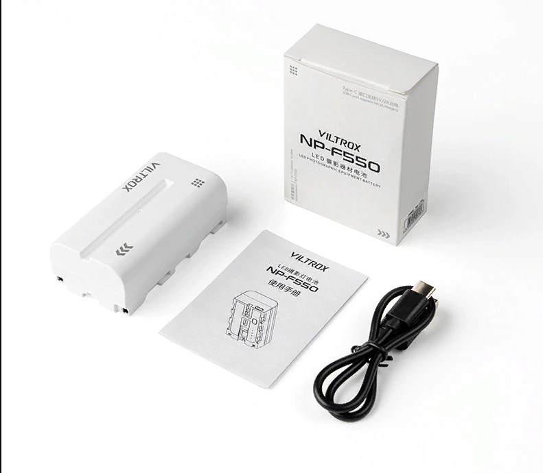 Аккумулятор Viltrox NP-F550 L-Series — 1 шт.Кабель USB-C — 1 шт.