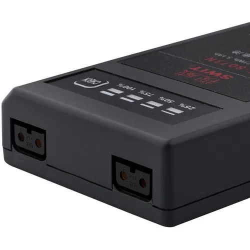 - Зарядка через D-tap: возможно заряжать аккумулятор с помощью портативного зарядного устройства SWIT PC-U130B/B2, что делает процесс удобным и быстрым.