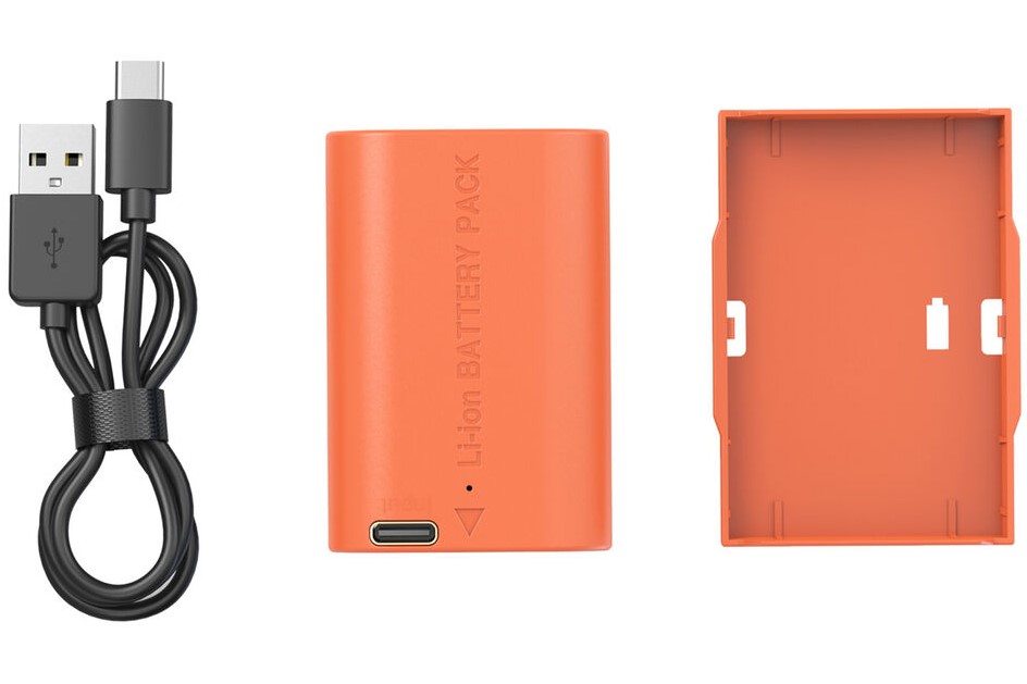 Аккумулятор использует литий-ионную технологию с заявленной ёмкостью 2520 мА·ч и рассчитан на высокие токи, необходимые для работы современных камер в режиме фото и видео. Корпус окрашен в фирменный оранжевый цвет — это не только стильный акцент, но и удобство при поиске в сумке или кейсе.