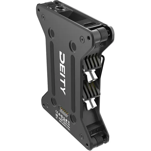 Для работы можно использовать несколько источников: классический 4-контактный разъём Hirose (12-16.8В), универсальный USB-C (5В) или беспроводное питание через контактные площадки от совместимого распределителя питания Deity SPD-Mini (продаётся отдельно). Каждая сторона распределителя (A/B) может получать питание независимо.