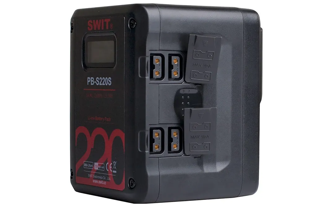 PB-S220S аккумуляторная батарея ёмкостью 220Вт.ч с креплением V-lock для кино и ENG камер, с последней конструктивной разработкой корпуса. Батарея поддерживает большой ток нагрузки, быстрый заряд и имеет LCD индикатор состояния элементов.
