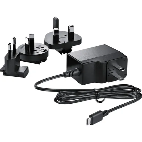 Блок питания оснащён современным разъёмом USB Type-C для подключения к устройствам Blackmagic. Он имеет выходную мощность 10 Вт (5В/2А), что обеспечивает стабильное питание без перегрузок. В комплект входит набор международных переходников для вилок, что делает его идеальным решением для работы в разных странах и на выездных съёмках.