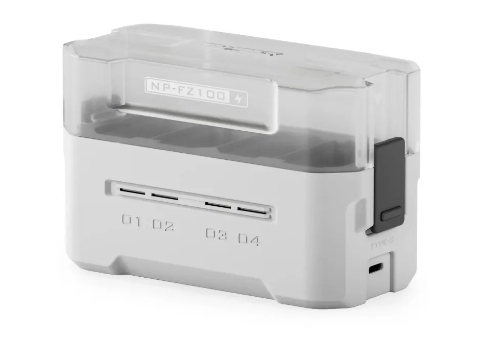 На выбор есть комплект с двумя или четырьмя аккумуляторами формата NP-FZ100 и одной четырёхслотовой зарядной станцией. Он совместим с оригинальными батареями Sony, аккумуляторами Tilta и большинством аналогов других производителей, что делает его универсальным выбором для парка оборудования на базе камер Sony.