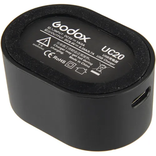 Godox UC20 – зарядное устройство для литий-ионного аккумулятора накамерных вспышек Godox серии V350.Через порт USB-C устройство подключается к источнику постоянного тока с напряжением 5 В, например к сетевому адаптеру VC1 или USB-порту компьютера. Обеспечивает выходное напряжение 8,4 В (0,35/0,7 А).Корпус устройства снабжен индикатором, который показывает степень заряда аккумулятора.
