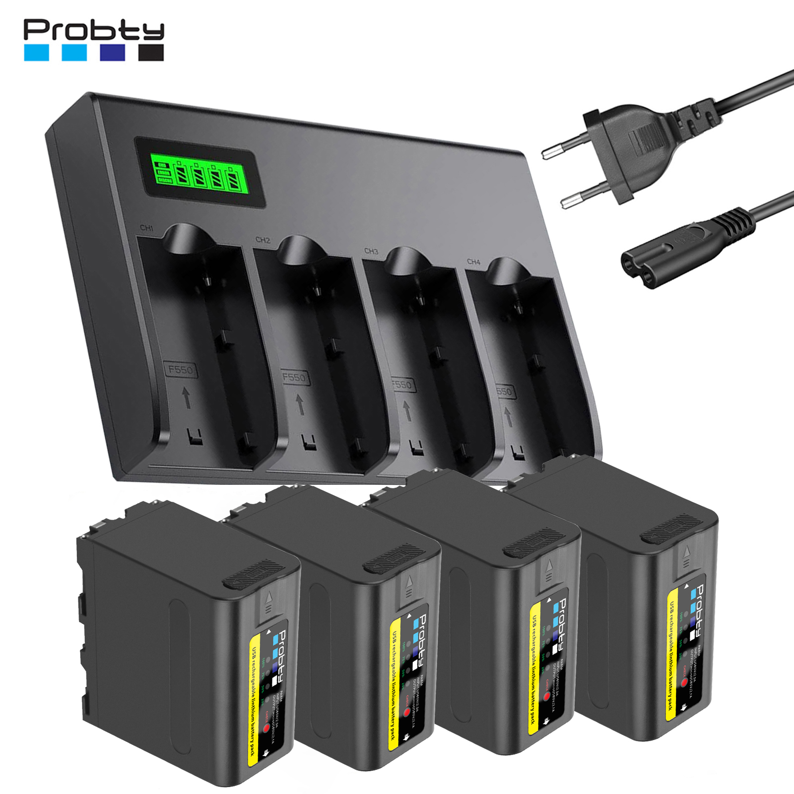 Это зарядное устройство от Probty позволяет заряжать до 4х аккумуляторов стандарта NP-F одновременно.