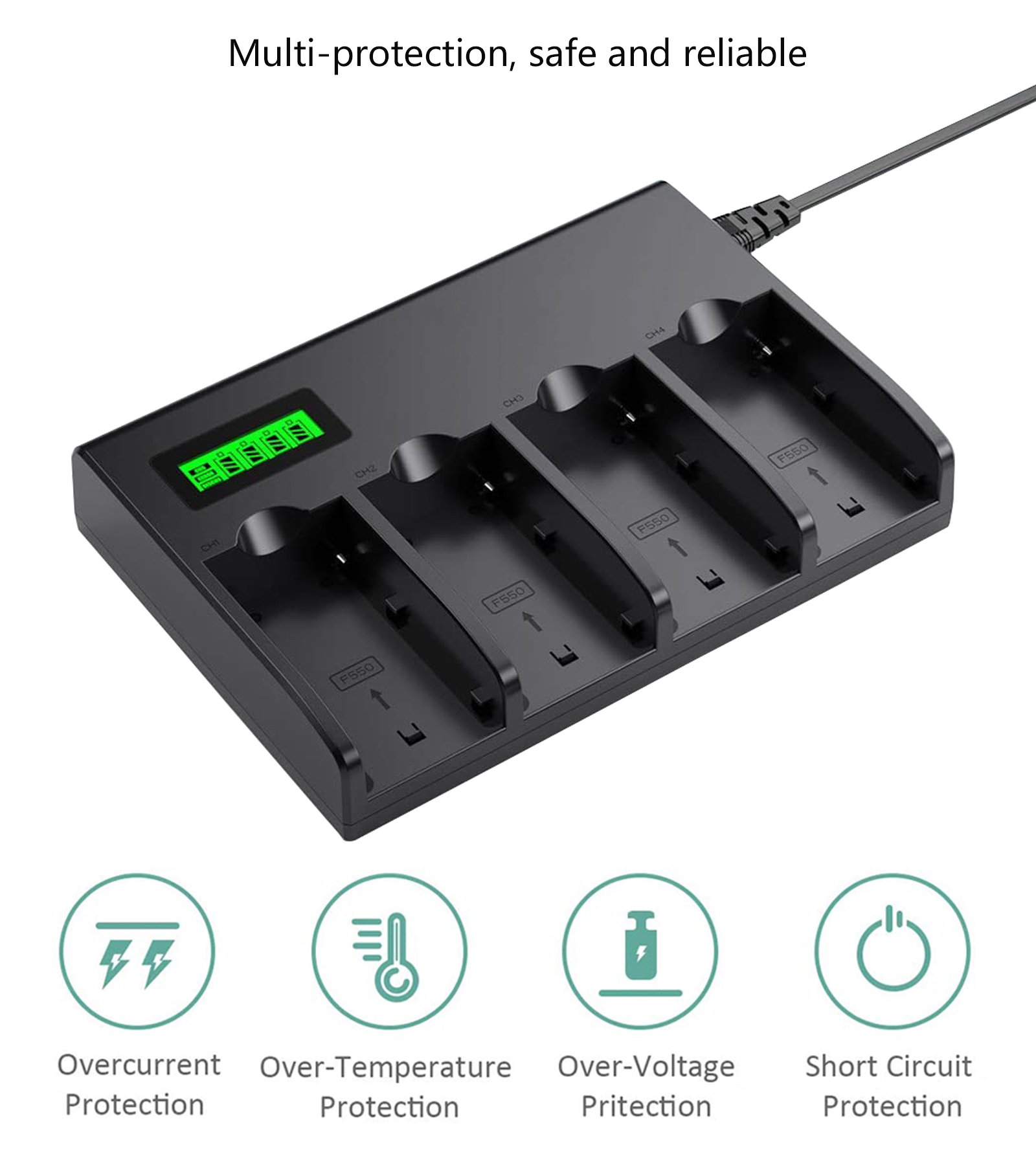 - Совместимость: Зарядное устройство заряжает до 4х аккумуляторов формата NP-F и совместимо с батареями NP-F