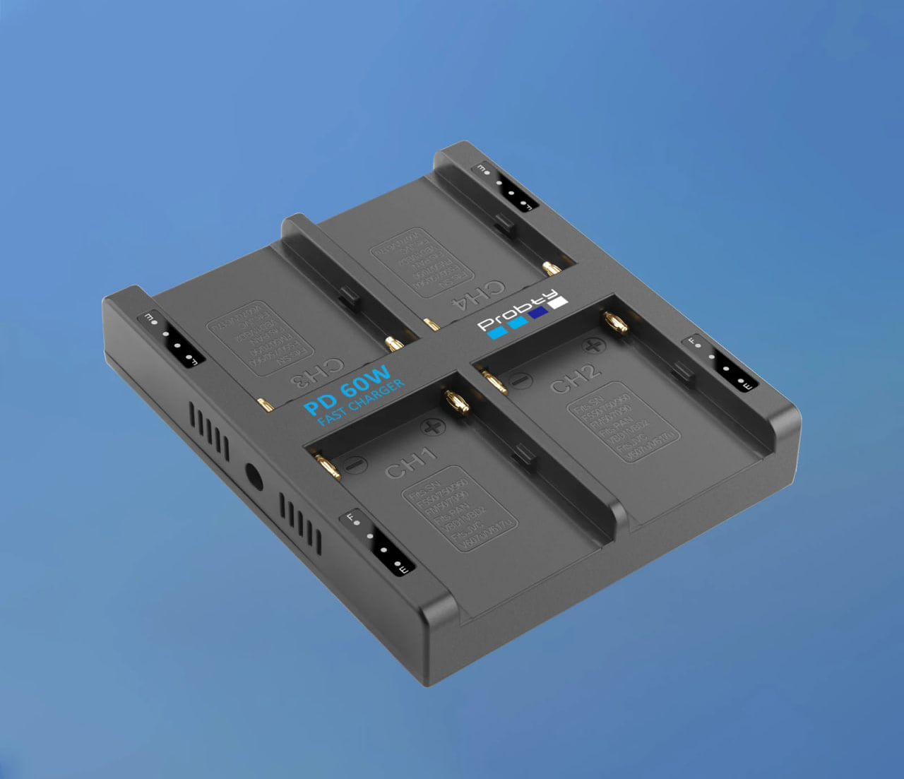 Зарядное устройство Probty 4-Channel Camera Battery Charger предназначено для эффективной и одновременной зарядки до четырёх камерных аккумуляторов формата NP-F.