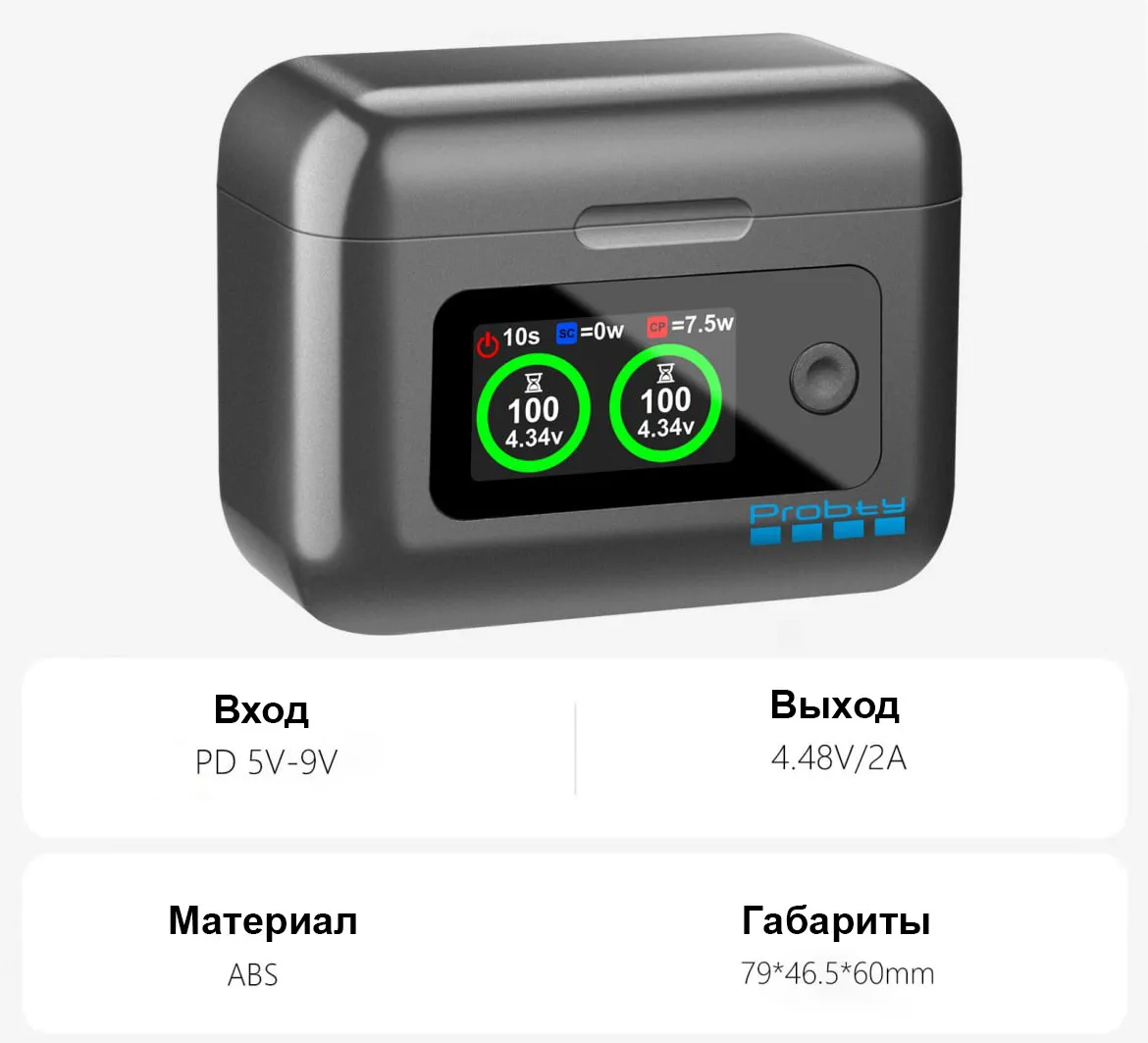 Зарядное устройство Probty Intelligent для аккумуляторов Insta360 X5 — это компактное и умное решение для быстрой и безопасной зарядки аккумуляторов Insta360 X5. Оно поддерживает оригинальные и совместимые батареи формата X5, автоматически распознаёт их состояние и подбирает оптимальный режим заряда. Благодаря встроенной системе защиты и информативному LED-индикатору, устройство обеспечивает надёжную эксплуатацию даже при частом использовании, а его миниатюрный размер позволяет брать его с собой в любую поездку. Для зарядки достаточно подключить устройство к любому USB-источнику питания: от сетевого адаптера и ноутбука до павербанка. Это особенно удобно на выездных съёмках, где нет доступа к розетке. Благодаря низкому энергопотреблению и эффективной системе охлаждения, устройство может работать в течение нескольких часов без перегрева.