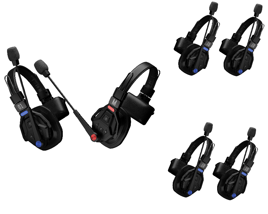 Легкая и удобная гарнитура весом всего 178г оснащена поворотным микрофоном 270°, еёможно носить как на левом, так и на правом ухе. Конструкция обеспечивает комфорт при длительном использовании. Все гарнитуры оснащены съёмными аккумуляторами: ведомые работают более 10 часов, ведущий — более 5 часов при подключении четырёх гарнитур.