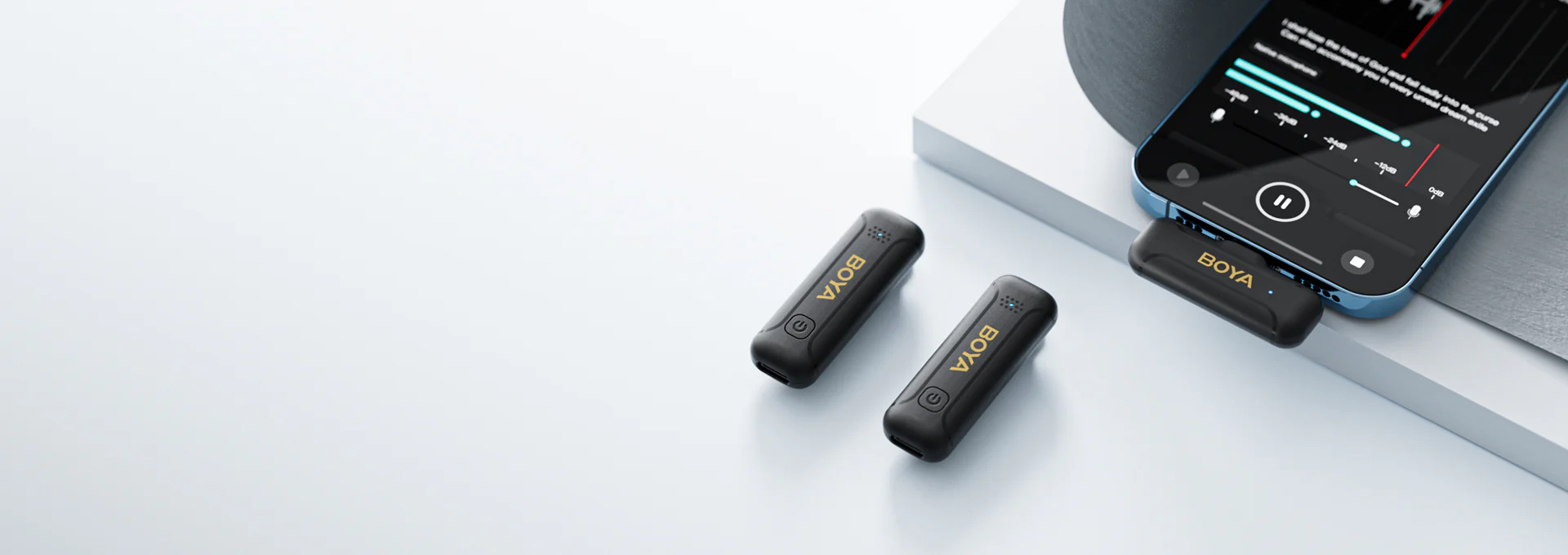 Встроенный аккумулятор передатчика емкостью 95 мАч обеспечивает до 10 часов непрерывной работы, чего хватает на полный съемочный день. Система поддерживает функцию шумоподавления для очистки аудиодорожки от посторонних звуков, а также позволяет вести зарядку мобильного устройства во время записи.