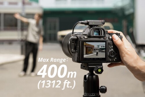 Используйте встроенные элементы управления передатчиком для переключения между двумя уровнями шумоподавления. Базовый уровень идеален для тихих помещений, уменьшая шумы от вентиляторов, кондиционеров и других источников, сохраняя при этом чистый голос. Усиленный уровень идеален для шумных условий, например при работе на оживленной улице. Включите автоматическое ограничение, чтобы снизить громкость входного аудиосигнала, предотвращая перегрузку и обеспечивая надежное качество звука. Это устраняет необходимость настройки параметров на ходу. Дистанция беспроводной связи при прямой видимости составляет 400 м.