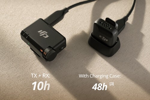 Встроенные перезаряжаемые аккумуляторы как в передатчике, так и в приёмнике обеспечивают длительное время работы — 11,5 и 10,5 часов соответственно. Зарядите устройства всего за пять минут, чтобы получить дополнительный час работы, когда оба полностью разряжены, с помощью входящей в комплект зарядной док-станции. В приложении DJI Mimo вы можете включить автоматическое отключение питания системы, что приведёт к автоматическому выключению обоих устройств через 15 минут без подключения, для сохранения заряда аккумулятора.
