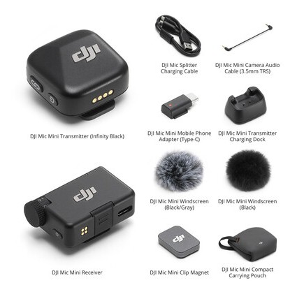 Петличная радиостема DJI Mic Mini разработана для того, чтобы помочь создателям контента записывать улучшенное аудио в интервью, видеоблогах, прямых трансляциях и видео для соцсетей. Система может подключаться к вашей DSLR/беззеркальной камере или смартфону на iOS/Android по проводу или по беспроводной связи. Она записывает чёткое и надёжное аудио с расстояния до 400 м с помощью миниатюрного всенаправленного микрофона/передатчика. Крошечный приёмник можно установить на камеру или подключить напрямую к разъёму Lightning/USB смартфона или ноутбука через порт USB-C или с помощью отдельно приобретаемого адаптера для мобильного телефона.