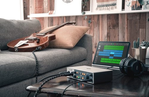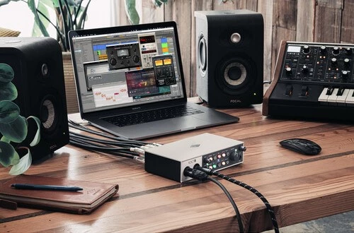 Volt 4 может работать как от USB-шины компьютера, так и от внешнего блока питания, что особенно удобно при записи с iPad или iPhone. Для подключения к iOS-устройствам потребуется адаптер Apple (приобретается отдельно). Такая универсальность делает интерфейс отличным выбором для выездных сессий, репетиций или уличных записей.