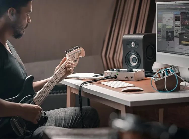 Интерфейс поддерживает прямой мониторинг без задержек, имеет отдельные регуляторы громкости для наушников и мониторов, а также переключение между моно и стерео. Два MIDI-порта (5-pin DIN) на задней панели позволяют легко интегрировать клавиатуры или секвенсоры. Все четыре выхода (два мониторных + два линейных) можно использовать для подключения колонок или внешних процессоров.