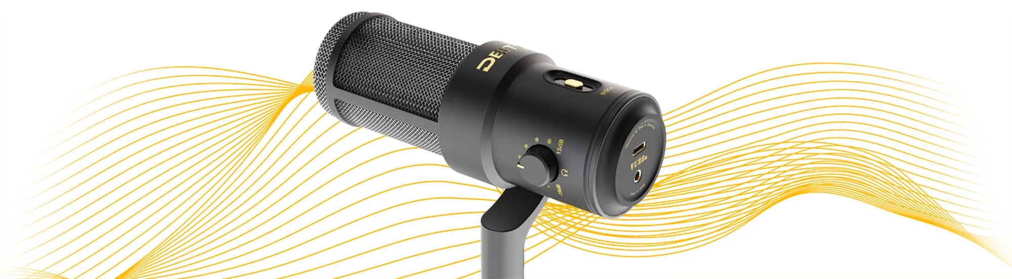 - Встроенный лимитер: Микрофон автоматически включает аналоговый лимитер при усилении более 50%, предотвращая искажения звука.
