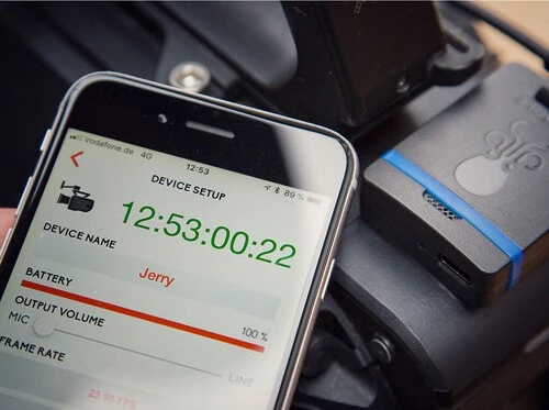 Устройство может работать как мастер-часы, генерируя LTC-таймкод через 3,5 мм разъём или принимать внешний сигнал через вход микрофона (функция jam-sync). Это позволяет синхронизировать несколько TRACK E между собой или с другими устройствами Tentacle, например SYNC E. Благодаря обновлённой прошивке, все рекордеры остаются в фазе даже вне зоны действия Bluetooth управлять ими через смартфон нужно только для запуска, остановки или изменения настроек.
