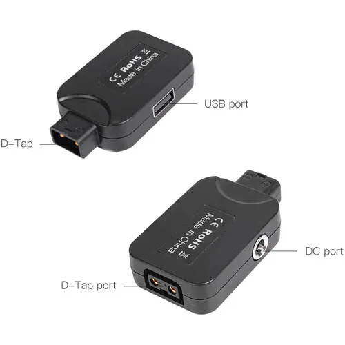 - DigitalFoto Solution Limited D-Tap Power Adapter с выходами D-Tap, USB и DC-разъемом 2.1 мм.