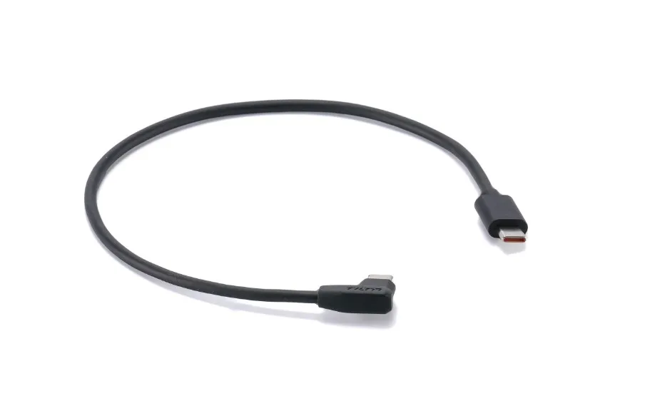 Правый угол разъёма USB-C снижает механическое напряжение на порт устройства и предотвращает случайный обрыв соединения. Такая конструкция особенно полезна при работе с камерами в клетке или на штативе, где прямой штекер может мешать или повреждаться.