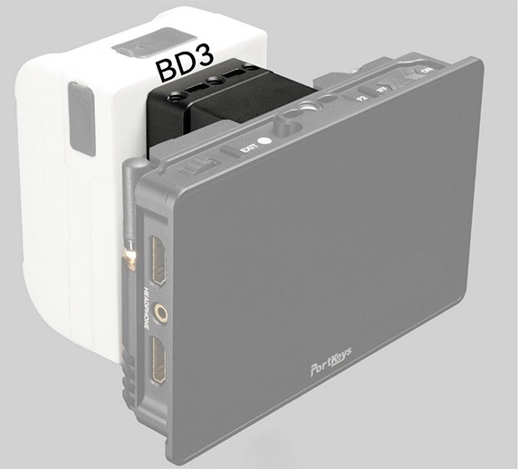 Корпус BD3 изготовлен из прочного алюминиевого сплава и ударопрочного пластика ABS engineering plastic, что обеспечивает долговечность и легкий вес. Особенностью устройства является поворотная пластина V-mount, которая упрощает установку и организацию кабелей.