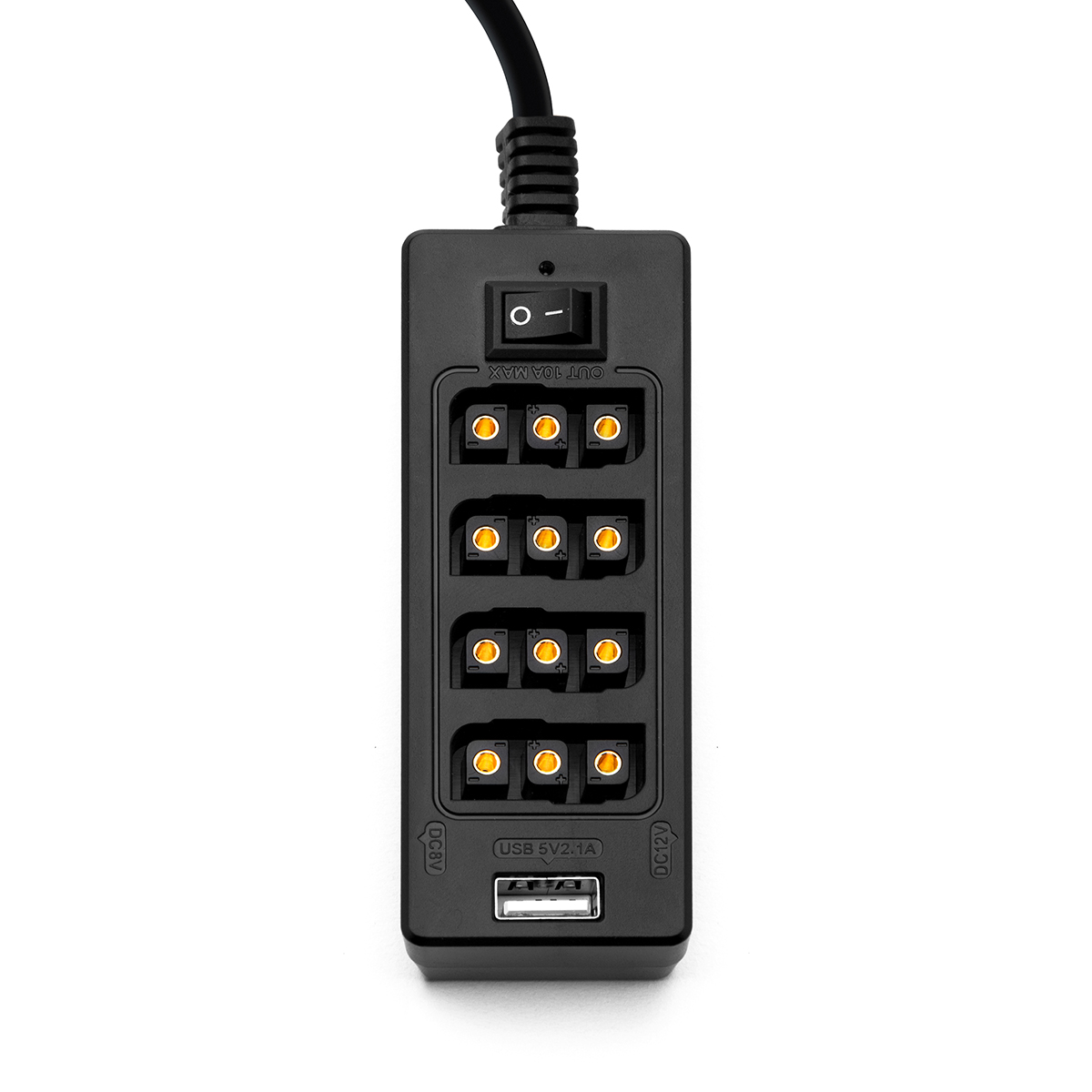 Устройство представляет собой спиралеобразный кабель с разъемом D-Tap для подключения к аккумуляторному элементу. С одной стороны DIGITALFOTO WY-4D-TAP D-TAP обеспечивает вилку D-tap с другой адаптер c 4мя портами D-tap, который позволяет подключать до четырех различных устройств к одной батарее. На адаптере имеется USB выход для питания камер и другого вида оборудования , а также кнопка переключения (вкл./выкл.), которая способствует безопасному отключению всех подключенных устройств.