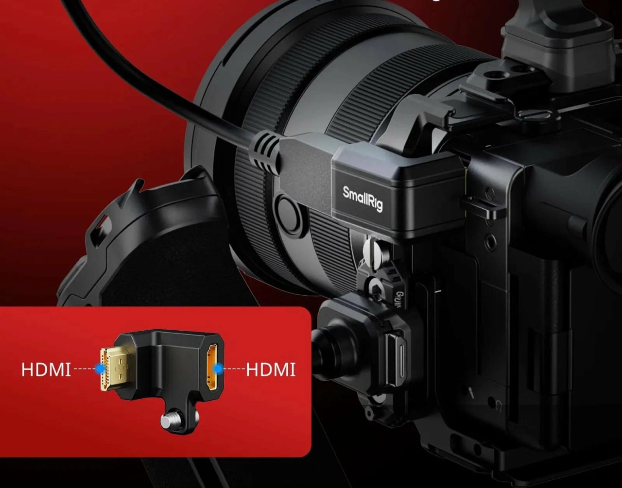 Адаптер HDMI SmallRig 5593 с угловым разъёмом решает одну из самых частых проблем при работе с камерами в вертикальной ориентации, мешающийся кабель. Благодаря повороту разъёма на 90°, шнур направляется вперёд, а не вбок, что исключает помехи при установке камеры в клетку, на L-образную площадку или при использовании в вертикальном режиме. Простая и надёжная конструкция делает адаптер незаменимым аксессуаром для владельцев Sony FX2 и схожих моделей.