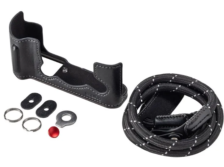 Благодаря встроенной резьбе 1/4"-20 камеру можно напрямую устанавливать на штатив или мэджик арм, не снимая чехол. Для дополнительного удобства предусмотрен регулируемый наплечный ремень, который крепится через стандартные проушины фотоаппарата. В набор входят две пары уплотнительных колец резиновые и кожаные, которые обеспечивают плотное прилегание чехла к корпусу и предотвращают его смещение. Также прилагается миниатюрный плоский ключ для затяжки крепёжного винта, он хранится прямо в чехле, так что всегда будет под рукой.