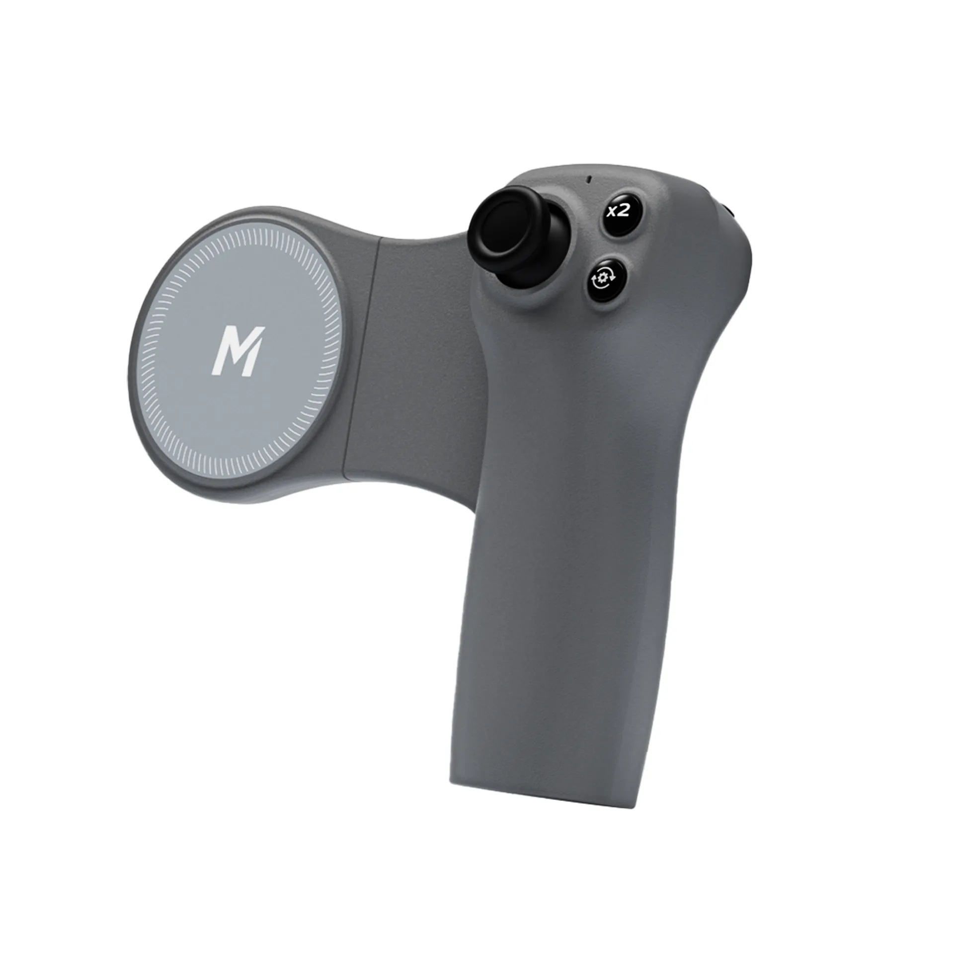 Джойстик на базе технологии датчика Холла обеспечивает точное и плавное управление, контроль панорамирования, наклона и движения стабилизатора, выполнение фокусировки. На корпусе расположены кнопки для основных функций: запись/фото, переключение режимов, двойной зум и центрирование камеры одним нажатием. Встроенный держатель для телефона оснащён магнитным креплением, совместимым с чехлами MagSafe. Телескопическая конструкция регулируется под разные размеры устройств и поддерживает как альбомную, так и портретную ориентацию.