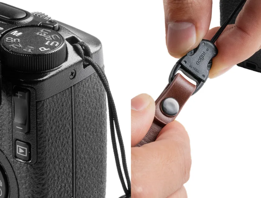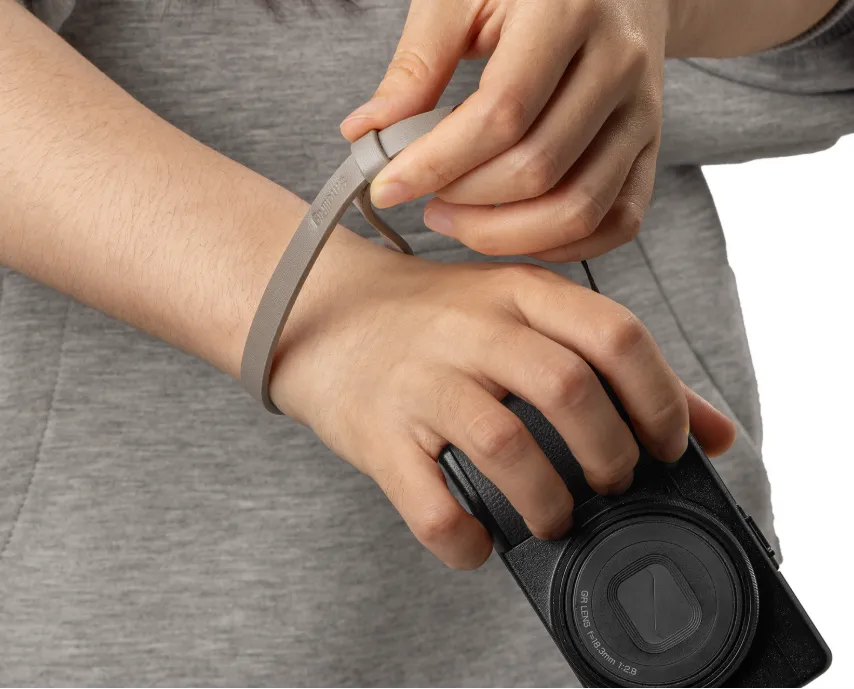 Конструкция позволяет за секунду пристегнуть или отстегнуть камеру, обеспечивая полную готовность к спонтанной съёмке. Ремешок совместим с большинством компактных камер, имеющих стандартные отверстия для ремня (от 3 мм), включая модели Ricoh GR, Sony ZV-1 II и Canon G7 X Mark III, а также с защитными чехлами для смартфонов.