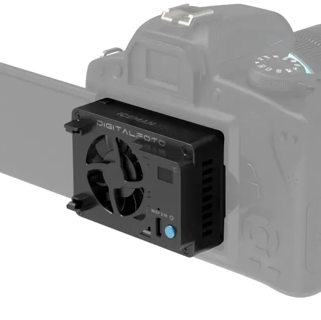 Устройство использует термоэлектрический чип и премиум термопанель для мгновенного отвода тепла. Встроенный 12-лопастной турбовентилятор обеспечивает тихое и мощное охлаждение, идеальное для стриминга и записи видео. Специальный кронштейн с пружинными фиксаторами позволяет быстро закрепить устройство на камере, не нарушая баланса снаряжения.Интеллектуальный контроль температуры