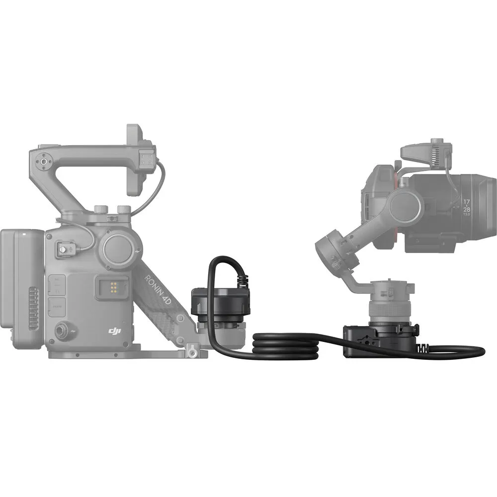 Один конец Flex крепится к корпусу Ronin 4D, другой фиксирует камеру Zenmuse X9. Гибкий кабель обеспечивает двустороннюю связь: передача видеосигнала и команд управления. Компактная конструкция не ограничивает подвижность оператора и позволяет выполнять съёмку с нестандартных ракурсов без потери качества.