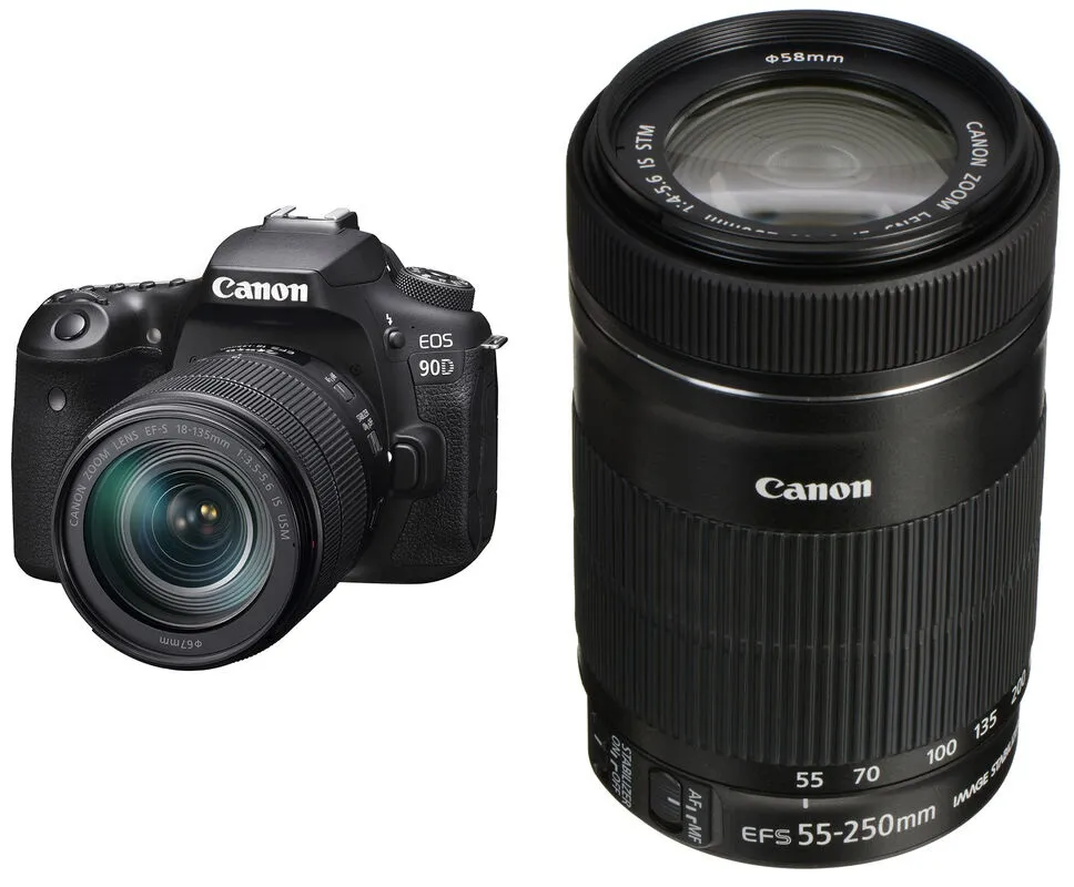 Купить Камера Canon EOS 90D DSLR с 18-135мм и 55-250мм объективом в FotoFrog
