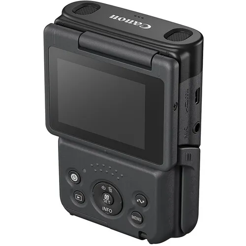 Благодаря использованию утилит студии видеоблогинга в портативном, карманном устройстве, Canon Powershot V10 представляет собой видеокамеру черного цвета, готовую к ведению видеоблога, с 19-миллиметровым широкоугольным объективом, высококачественной стереозаписью звука и встроенной подставкой на 30 ° для съемки вашей уникальной истории и обмена ею.