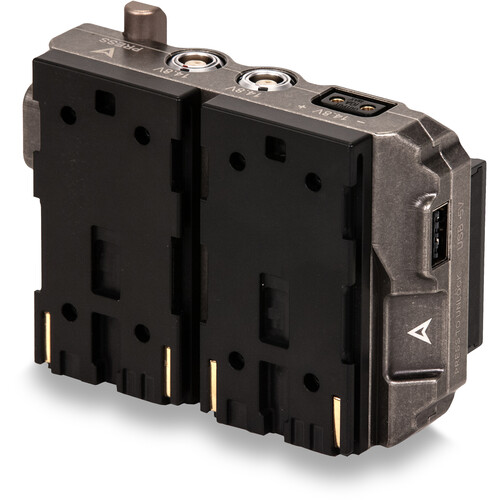 - Установка: Перед установкой убедитесь, что камера RED Komodo выключена. Подсоедините адаптер к двойному аккумуляторному отсеку Canon BP на камере, обеспечив прочное и безопасное соединение.