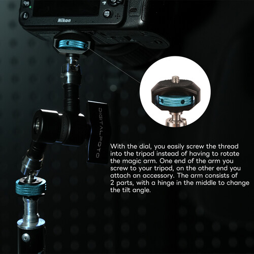 Кронштейн IRONMAN Cine Magic Articulating Arm от DigitalFoto Solution Limited упрощает установку накамерных мониторов и осветителей благодаря двойным шарнирным головкам. На одном конце расположен винт 1/4"-20 с удобной ручкой для фиксации, а на другом — «холодный башмак» с резьбой 1/4"-20. При необходимости «холодный башмак» можно снять, открыв дополнительный винт 1/4"-20 для еще большей гибкости монтажа. Кронштейн поддерживает нагрузку до 11 фунтов, что позволяет использовать большинство аксессуаров. Она изготовлена из нержавеющей стали для обеспечения прочности и долговечности.