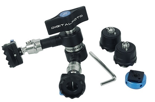 Одиннадцатидюймовый IRONMAN Cine Magic Articulating Arm от DigitalFoto Solution Limited упрощает интеграцию накамерных осветителей или мониторов, благодаря двойным шарнирным головкам. Кронштейн оснащен быстросъемными креплениями для удобного перехода между аксессуарами. Крепления имеют винт 1/4"-20 и выдвижной адаптер под винт 3/8"-16. Также кронштейн включает «холодный башмак» с резьбой 1/4"-20 для еще большей гибкости монтажа. Он поддерживает нагрузку до 6 кг, что позволяет использовать большинство аксессуаров, и изготовлена из нержавеющей стали для прочности и долговечности.