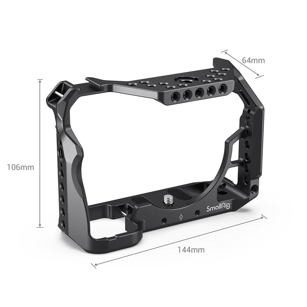 SmallRig 2087C даёт свободу выбора в использовании дополнительного оборудования или аксессуаров в зависимости от творческих задач и съемочной ситуации.  Большое количество отверстий с резьбой ¼” позволяет закрепить на клетке все необходимое для съемки, например фиксатор SmallRig 1679, чтобы исключить случайное выдергивание из камеры кабеля HDMI. Разъем «холодный башмак» с правой стороны клетки можно использовать для установки внешнего микрофона SmallRig 3468 или универсальных держателей SmallRig 1497В/1498В.
