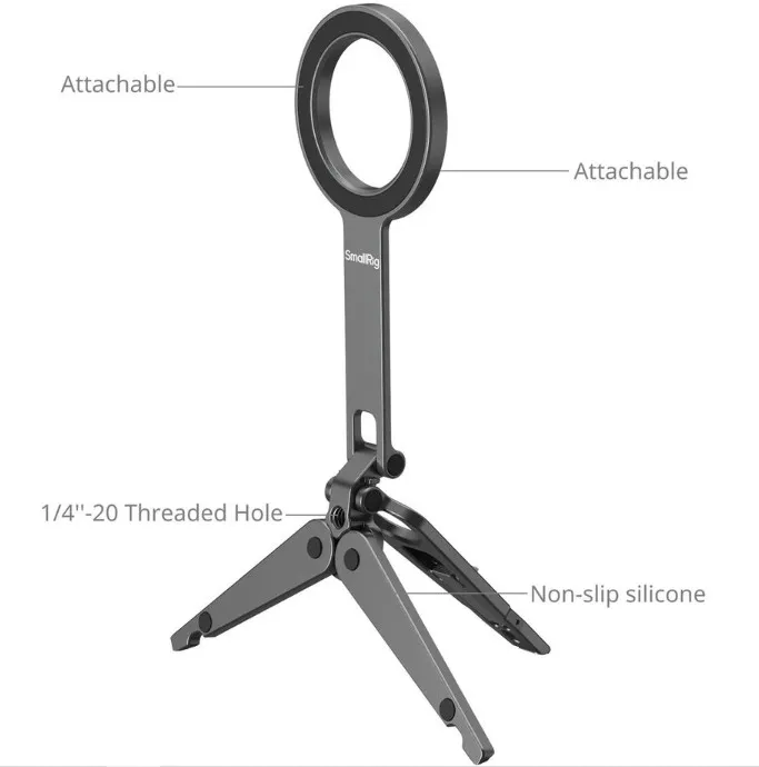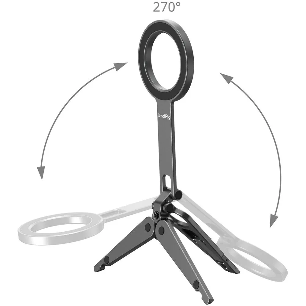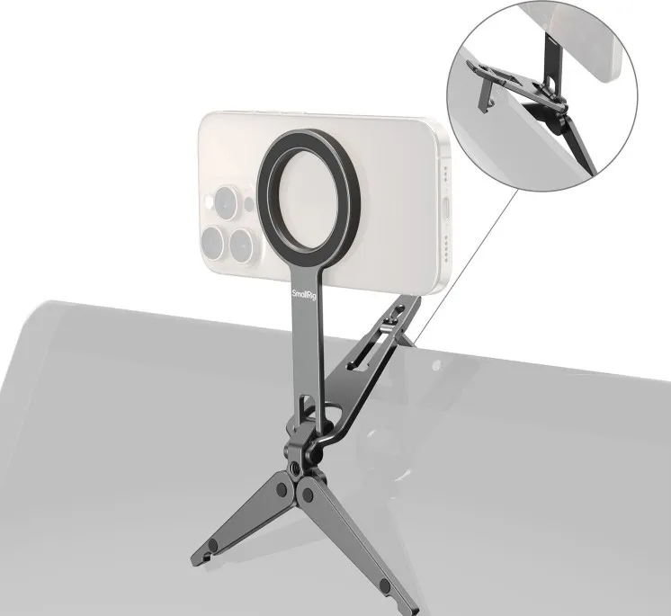 Универсальное решение для съёмки на смартфон, он работает как мини-штатив на столе, как настольная подставка для видеозвонков и как крепление на монитор для стриминга или записи обзоров. Благодаря двусторонним магнитам и регулируемому наклону на 270° вы мгновенно меняете ракурс от съёмки от себя до классического горизонтального кадра.