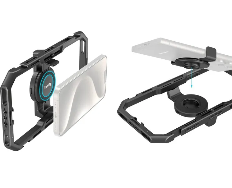 Клетка оснащена несколькими резьбами 1/4"-20 и «холодными башмачными шинами», что позволяет устанавливать широкий спектр аксессуаров: микрофоны, свет, мониторы и другие. Поддерживается установка магнитных фильтров 67 мм, а также имеется отверстие для наплечного ремня и слот для крепления на док-станцию. Фиксация смартфона осуществляется либо через MagSafe крепление, либо с помощью зажима — обеспечивая надёжную фиксацию.
