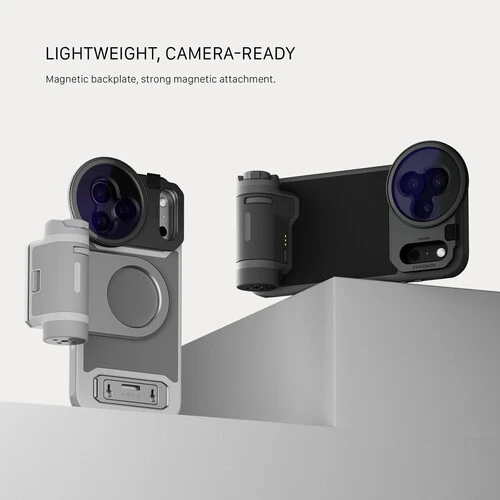 Сбалансированная система для мобильной съёмки из рук, объединяющая защиту, эргономику и расширяемость. В него входят клетка, рукоятка управления с функцией точной фокусировки, магнитный держатель фильтров 58 мм и универсальная задняя панель. Вместе они превращают флагманский смартфон в удобный инструмент для влогеров, репортёров и кинематографистов без избыточного веса и сложных сборок.