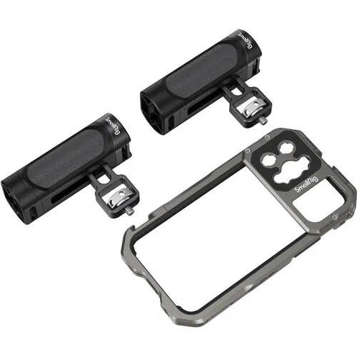 Представляем вам высококачественный набор аксессуаров, состоящий из клетки для смартфона и двух боковых рукояток. Этот набор разработан специально для профессиональных нужд, обеспечивая идеальное взаимодействие между вашим смартфоном и дополнительными компонентами.