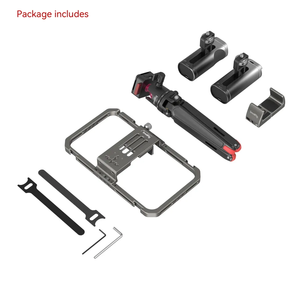 Клетка SmallRig 4120 для смартфона All-in-One Video Kit Pro (2022) представляет собой профессиональное решение для смартфонного влогинга и стриминга в реальном времени. В комплект входит универсальная клетка для телефона, беспроводная боковая ручка управления, быстросъемный штатив, держатель для внешнего аккумулятора и многое другое.