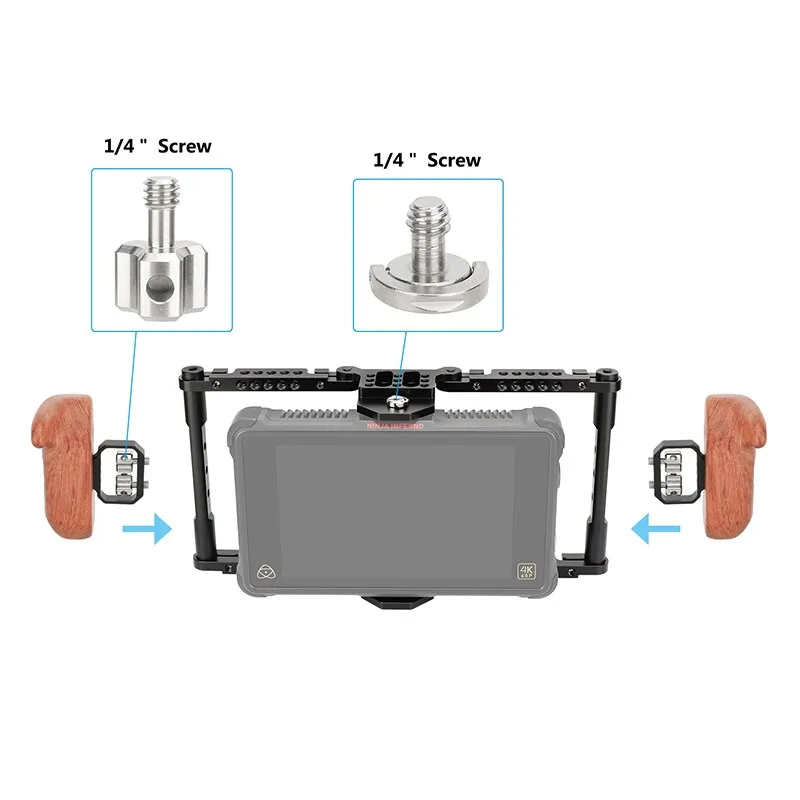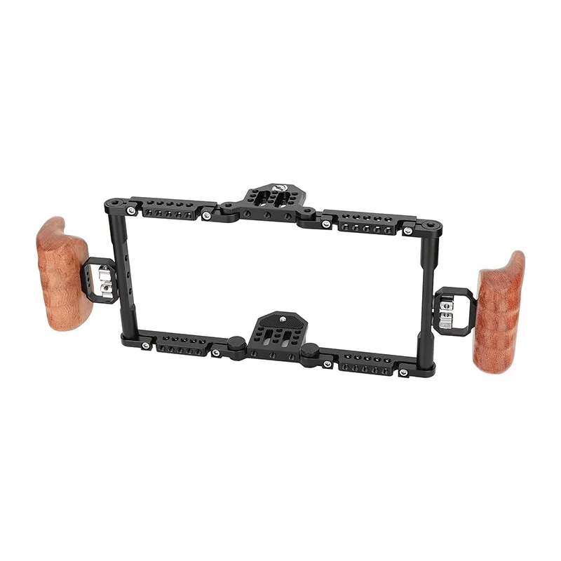 CAMVATE C3163 разработана для модульного использования и поддержки мониторов сложных размеров: 5-дюймовый или 7-дюймовый экран Atomos Ninja Inferno. Она является незаменимым помощником для режиссеров, операторов-постановщиков и других участников съемочной группы, которые часто перемещаются по съемочной площадке. Устройство оборудовано винтами 1/4"-20, которые позволяют закреплять монитор сверху и снизу. Также, в клетке присутствует множество отверстий с резьбой 1/4"-20, которые можно использовать для крепления дополнительных аксессуаров. Несомненным преимуществом клетки являются удобные рукоятки контурной формы, которые позволяют легко управлять системой при съемке. Поперечины клетки могут быть сложены для удобства хранения, когда она не используется. Более того, эргономический дизайн клетки обеспечивает плавное перемещение по съемочной площадке, не мешая работе на съемочной площадке.