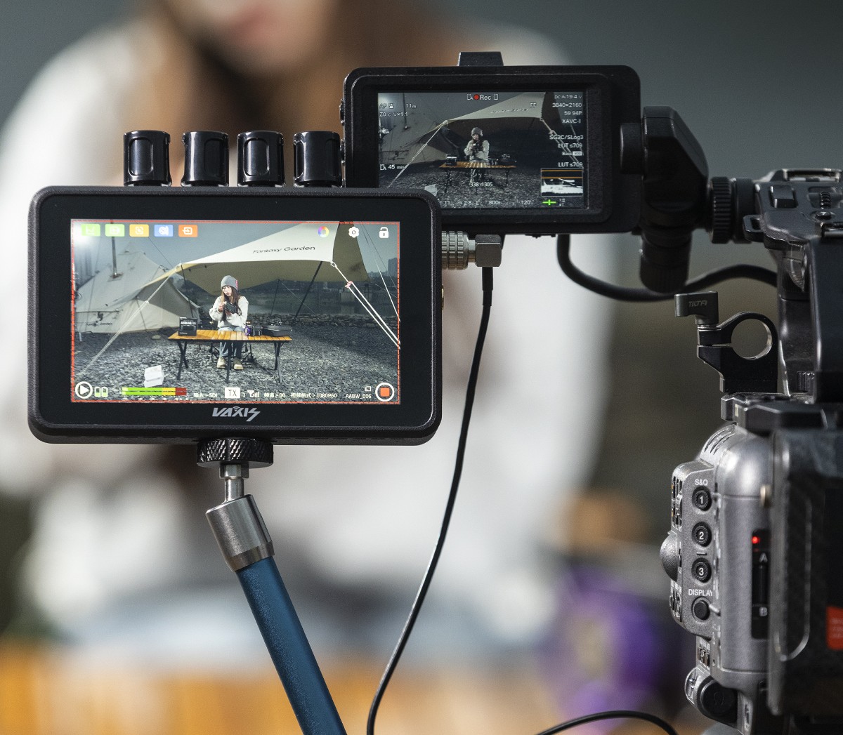 - Автономная работа. Монитор может питаться автономно от двух батарей NP-F с низким потреблением.