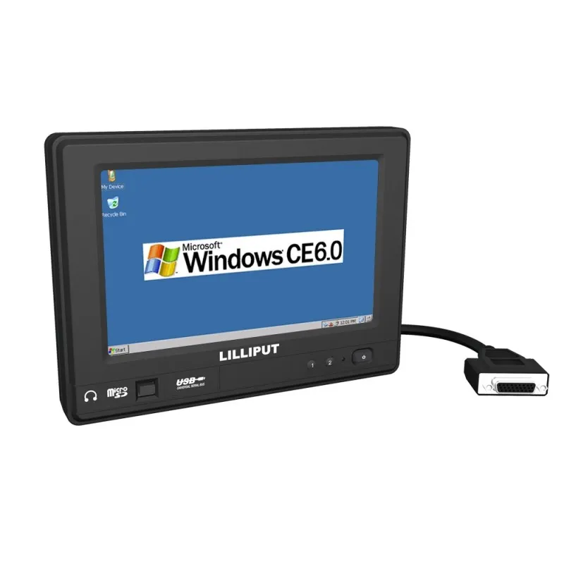 Lilliput PC-765 - это панельный 7" компьютер на ARM TI OMAP3525 может работать на ОС Windows CE 6.0 или Linux 2.6.32 имеет пылевлагозащищенный IP64 корпус, идеален в качестве панели управления станками.